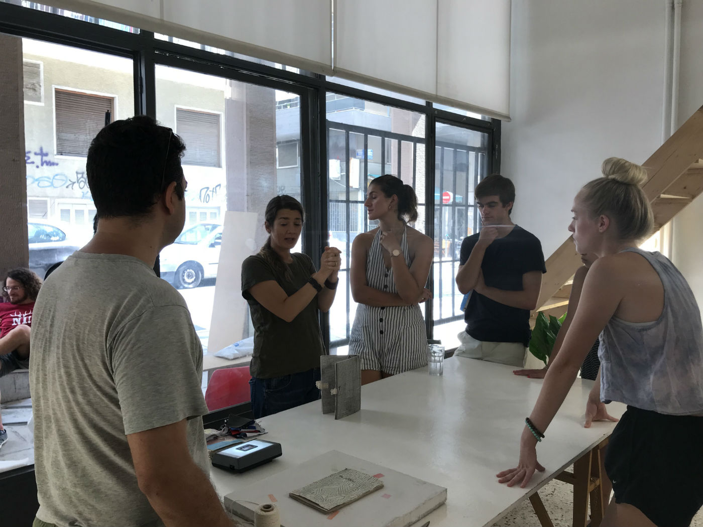 This is an exhibition created and curated by students from Columbia University. It was conceived over the course of a month spent in Athens studying the city’s culture and history. Working with 3 137’s ongoing artists' book series and with the curator Evita Tsokanta, we made artwork that aims to convey the experiences we have had as visitors in a country—a somewhat complicated process due to our limited background and subsequent lack of authority on Athenian culture. If the only Greek we know is how to curse and order coffee, how can we go about staging an exhibition? But we are excited to present our own personal perspectives, conscious of the fact that we are joining an ongoing dialogue surrounding the city’s global identity.