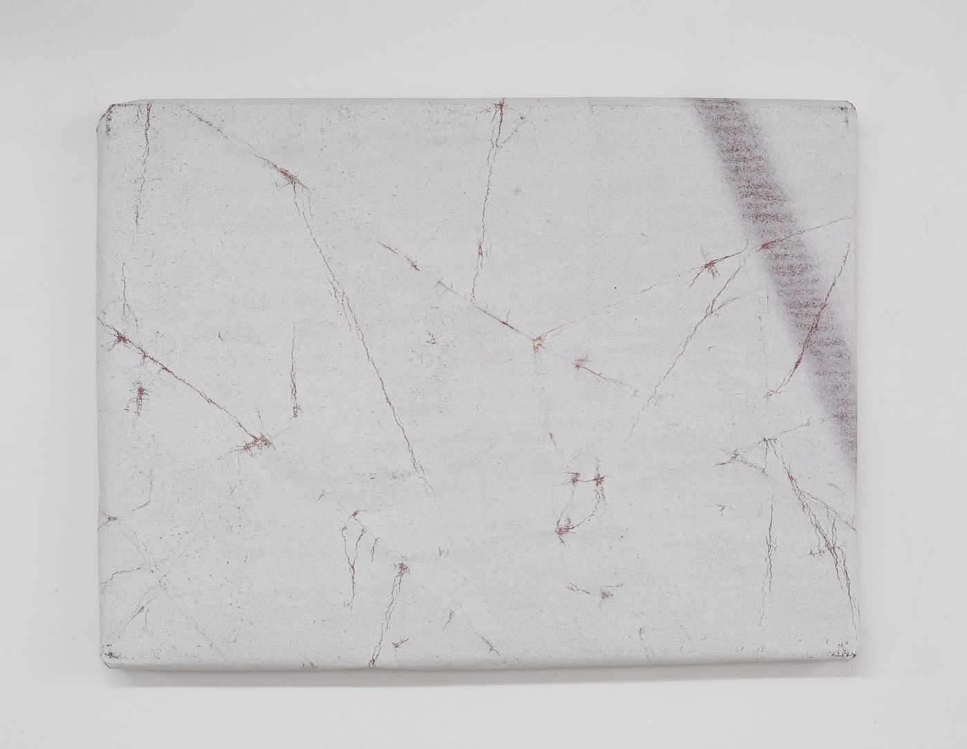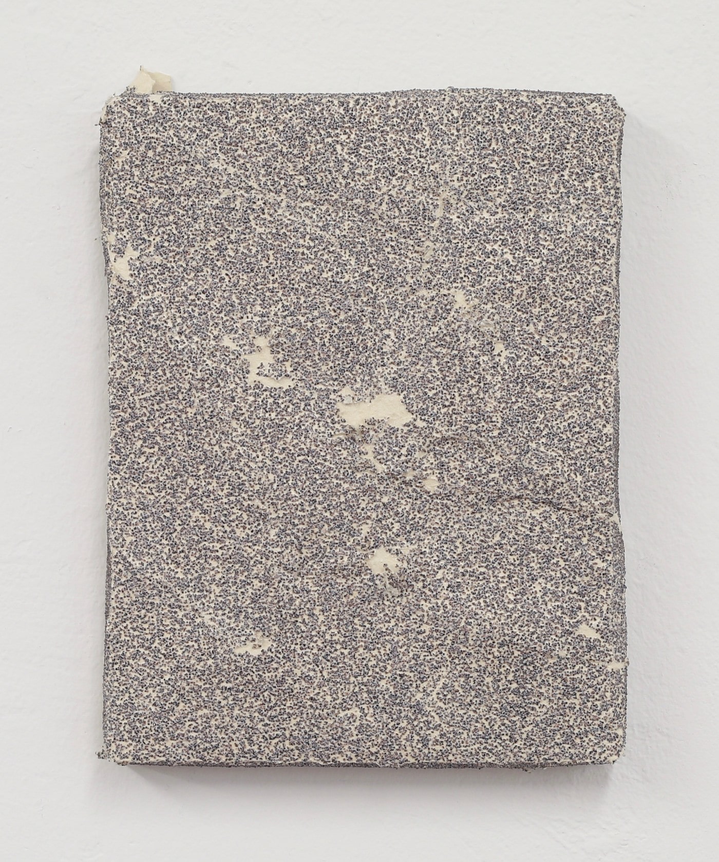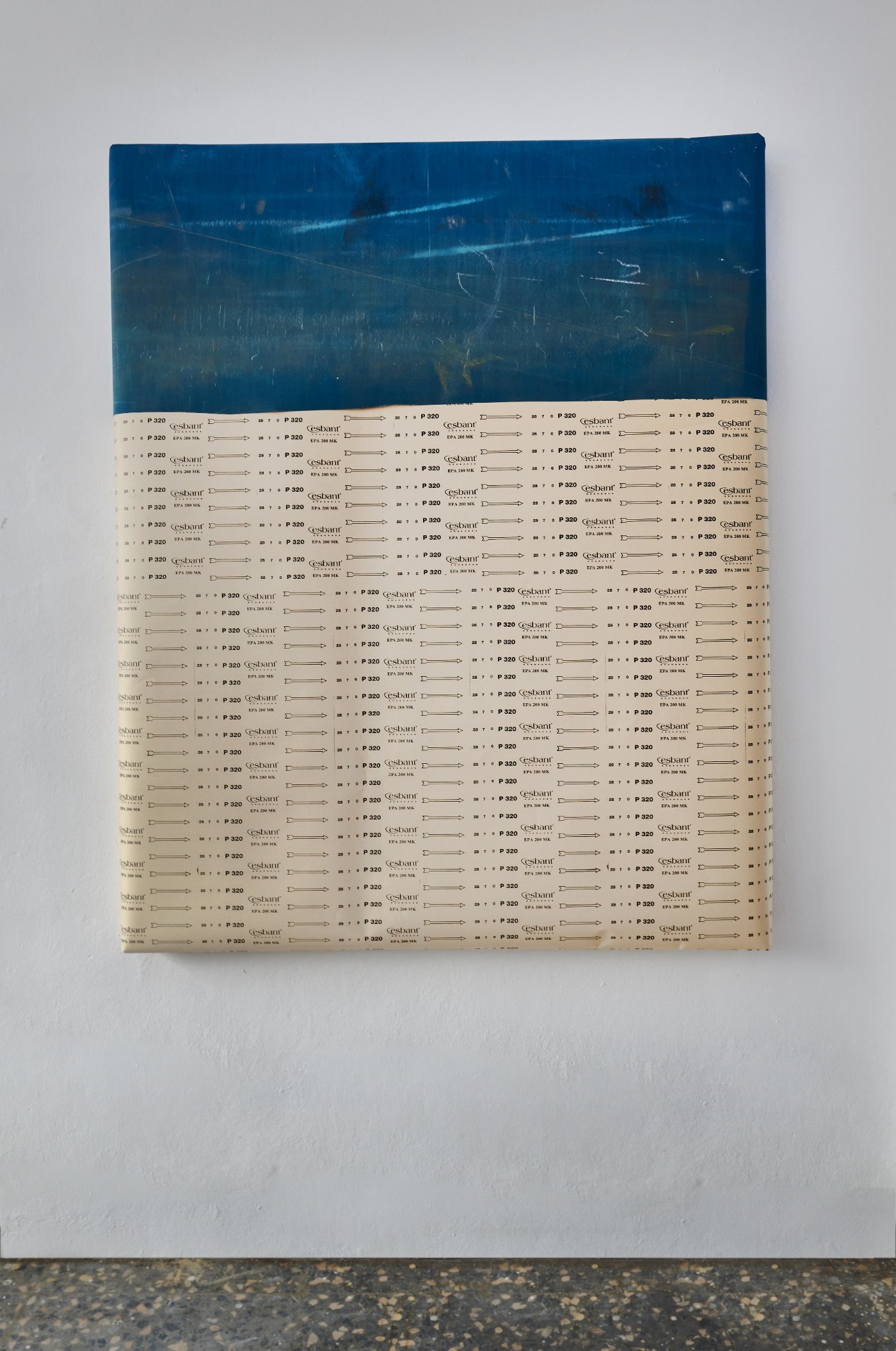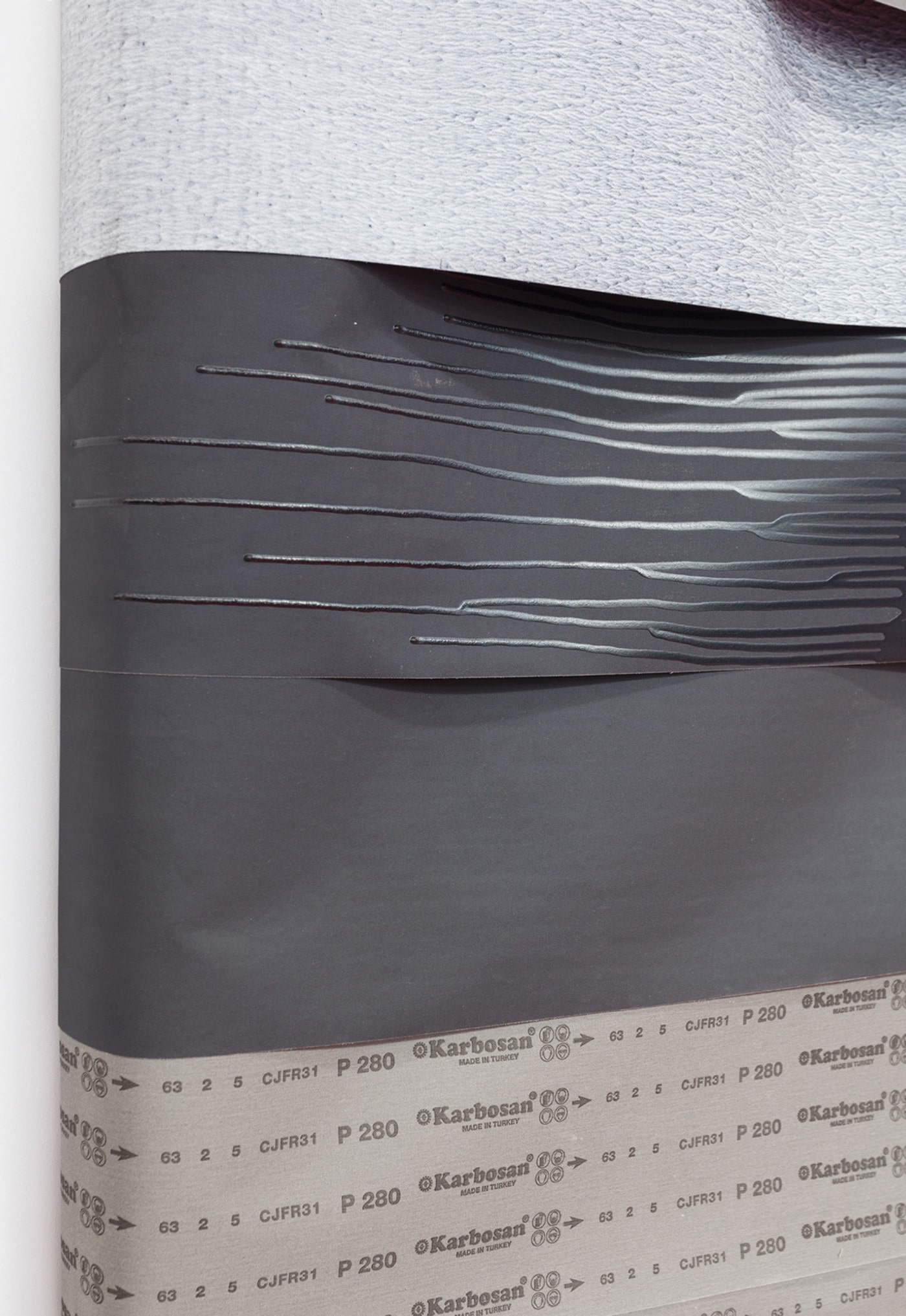 Sandpaper’s sole job is to destroy through erosion. What I am trying to achieve is in a way to destroy the destroyer. I physically destroy the sandpaper using my hands and body weight, and then stretch the remaining material over wooden panels as if it were canvas. The folds and the breaks in the pattern of the sandpaper contribute their own form of mark-making. I refer to these [objects] as my Sandpaper Paintings. More recently, I started using the back side of the sandpaper [as well], paying homage to the manufacturers and the factory that they came from. These paintings are representations of a cycle of destruction and creation: sandpaper is created by its manufacturers, is then destroyed and then re-purposed again as a "painting".