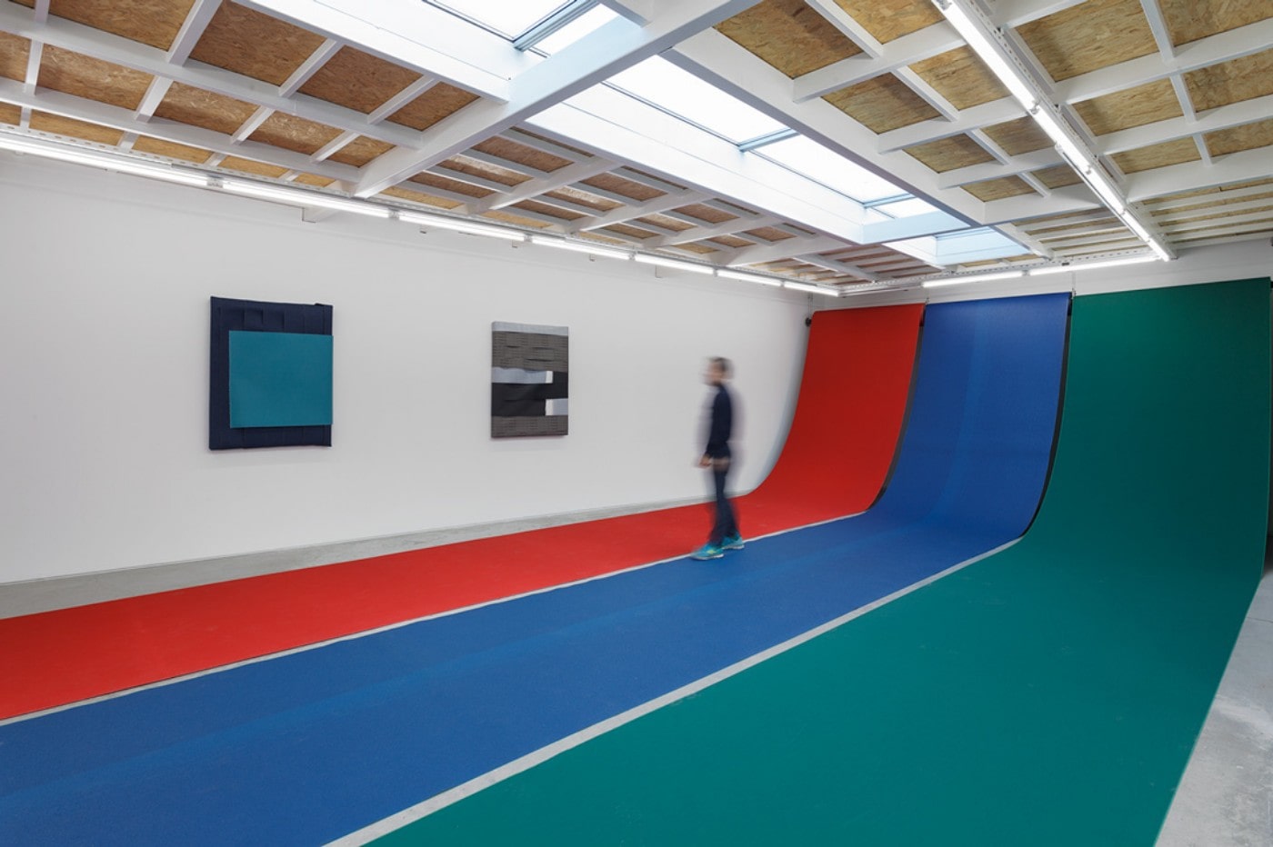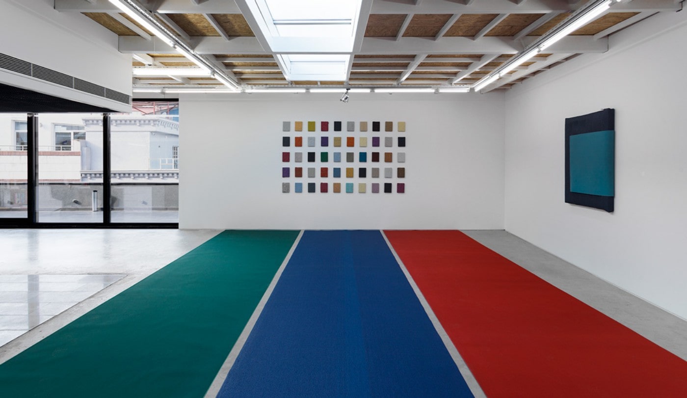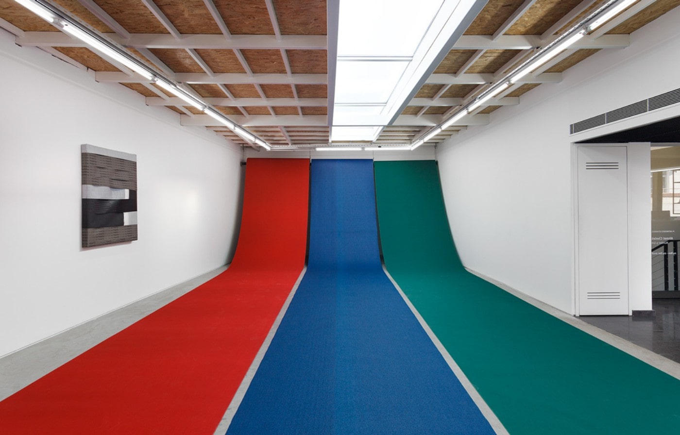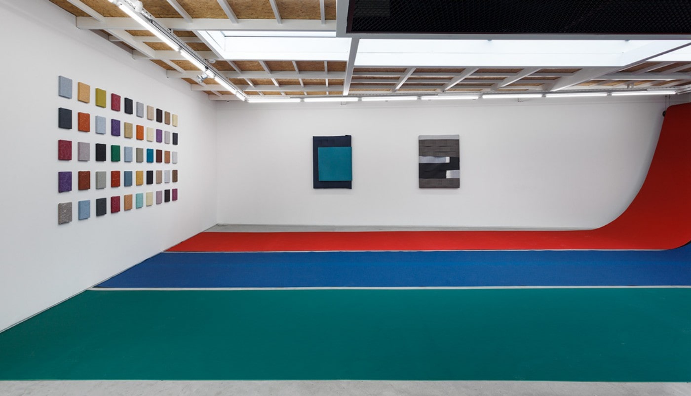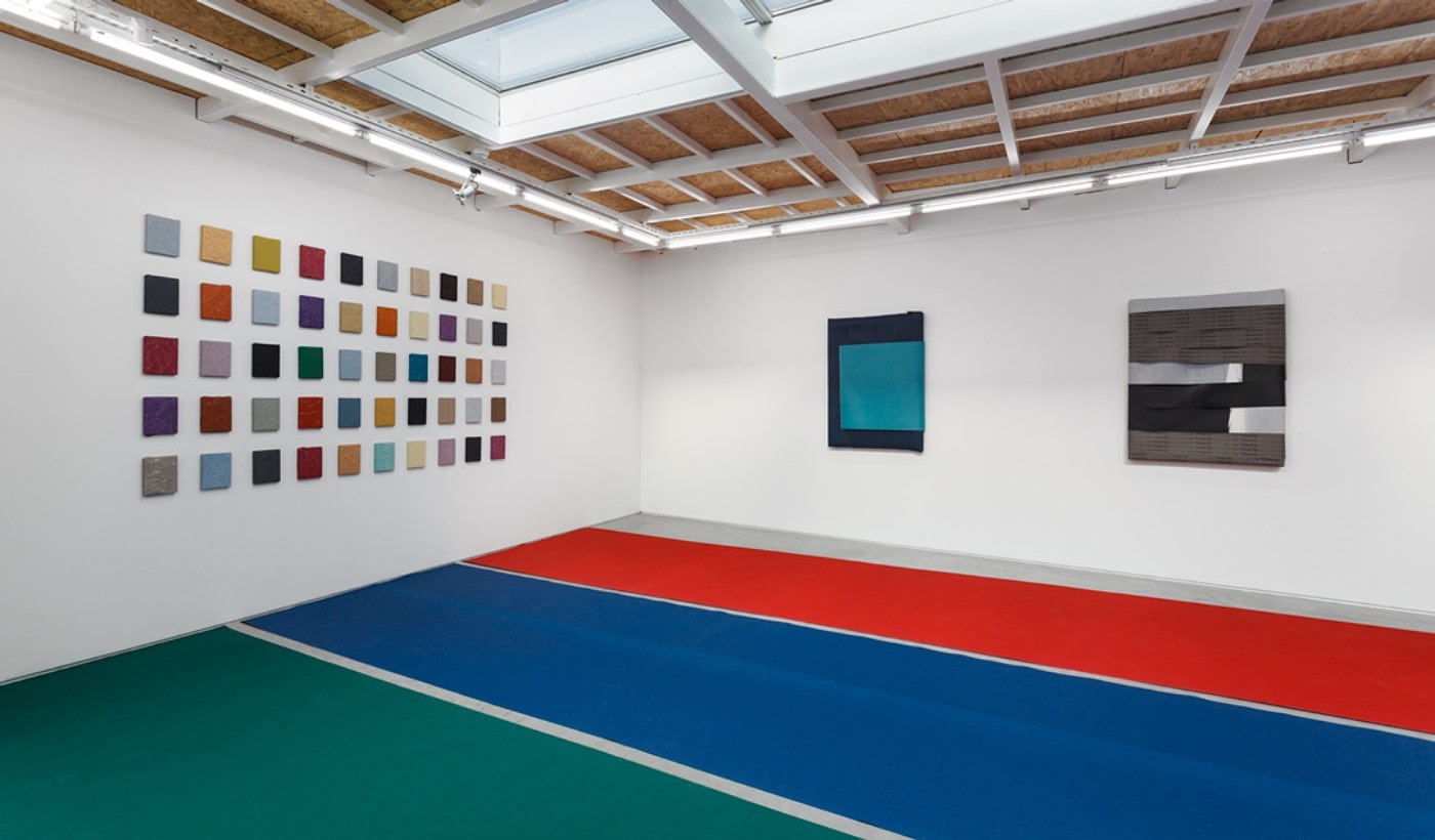 For his third solo exhibition, Turkish-American multimedia artist Ahmet Civelek exposes the subtler aspects of destruction through a series of works that utilise sandpaper as their main material. This new body of work continues Civelek's year-long preoccupation with the potential of destruction as a creative act, as well as his constant engagement with found objects for the creation of assemblages on canvas. At the exhibition Number 3: Grit Civelek has covered the entire gallery floor with rolls of sandpaper, on which visitors have to walk in order to approach the smaller works on the wall. According to the press release, visitors to the gallery have to sign a waiver before interacting with the piece.