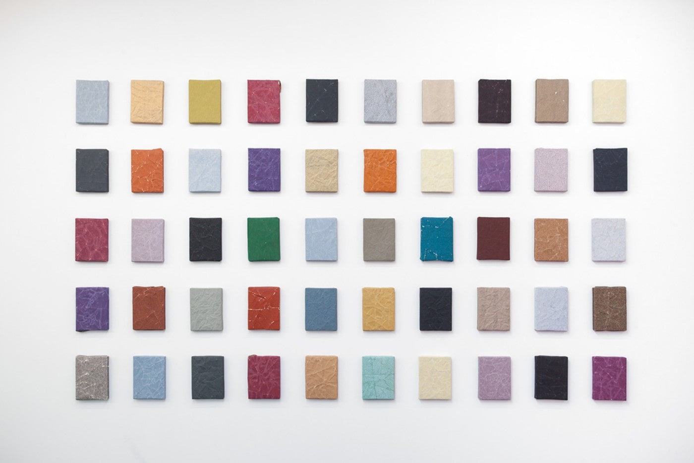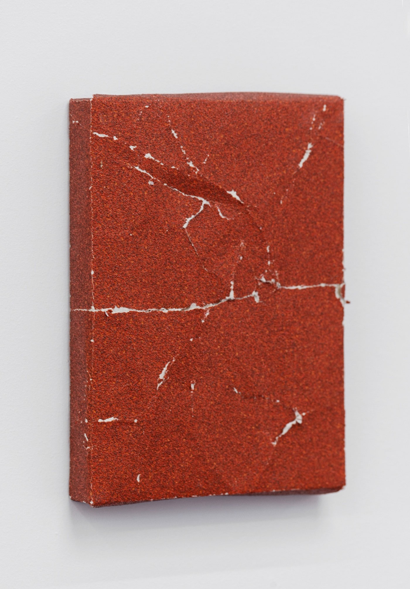 The mutual wearing off of the sandpaper floor and the shoes that step on it places visitors right in the middle of the self-destructive relationship sandpaper has with the things it touches. Meanwhile, the works on the wall are similar to the artist's previous "painting" series, where he covers canvas frames with found objects. The more recent "sandpaper paintings" feature pieces of sandpaper — both worn and pristine — that are stretched or nailed on wooden frames to create abstract compositions.