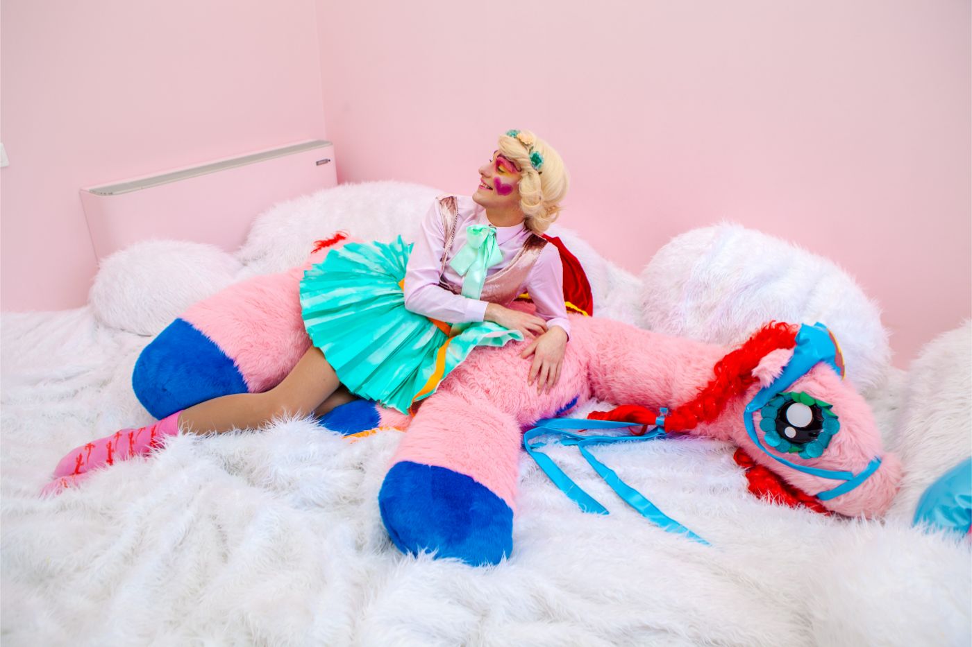 Somewhere in a dreamland of fluffy monsters and pink glitter, one can find Antigoni Tsagkaropoulou. Antigoni’s work merges imaginary and real worlds, childhood memories and adult life and is influenced by feminist and queer theories. By changing pre-established narratives and stories, Antigoni creates a hub of gender and sexual fluidity, and feminist discourses in a world that is imaginary, yet easy to be immersed in. Using experience and sentiment in her arsenal, she creates stories for the unsung heroes of society and for the princes and princesses that don’t fit in fairytales. Her work — stretching from performances to installations, from sartorial choices to sewing huge teddy bears — is anything but easy to put in a box. In the same respect, as she aspires to deconstruct notions such as gender expression and sexuality, we try to unpack her artistic disposition through a social and artistic lens. Antigoni talked to und. about her ongoing Fluffy project and a new work she will be showing at Thessaloniki International Film Festival this month.