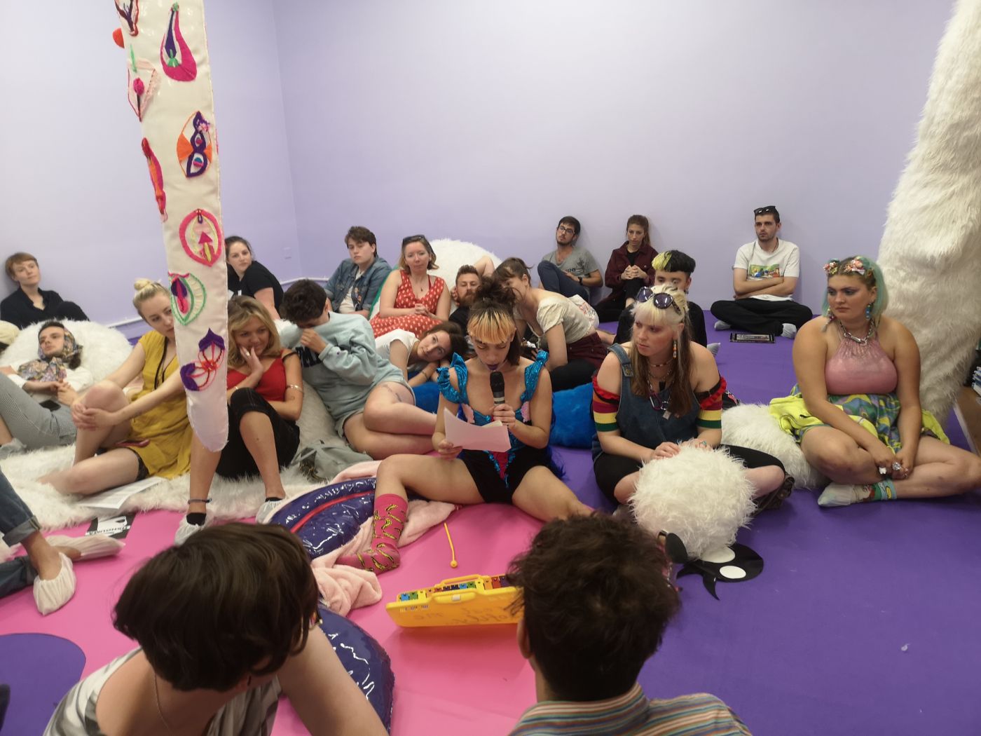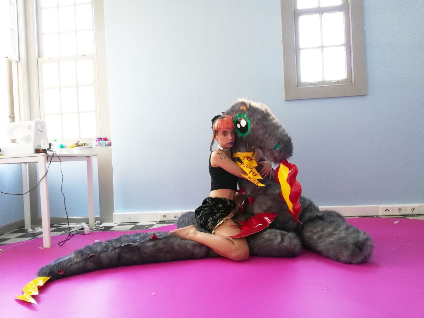 It’s my magic trick to create relationships of intimacy with the non-normative, which can be seen as a threat within the heteronormative society we live in. Playfulness and seriousness are not indispensably opposites. Using playfulness as a potent political tool to create visionary realities and imaginary worlds, my intention is to build bridges of kinship between art, alternative pedagogy and activism. Through playfulness we can explore our subjectivities and sexualities; through softness and vulnerability we can create symbiotic and caring relations. What is cute can at the same time be sharp, girly can be feminist, glitter can speak about trauma and something fluffy can attack the patriarchy.