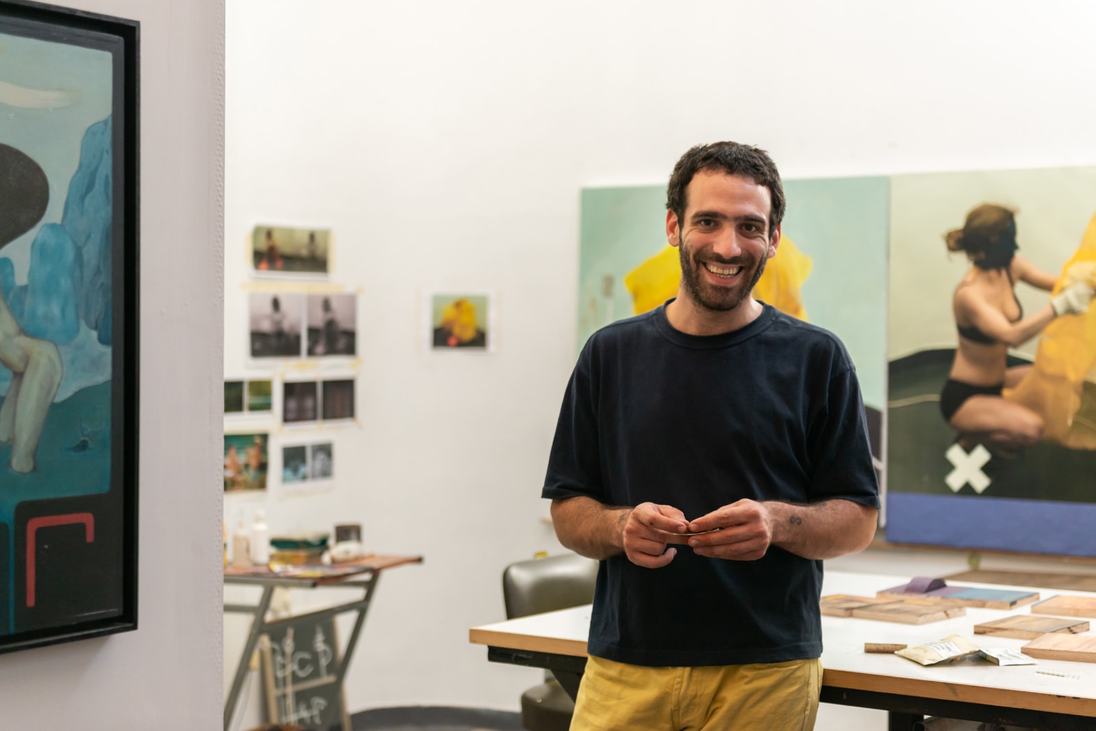 Athens-based visual artist Iasonas Kampanis discovered painting in two stages of his life: first as a child growing up in an artistic family, and later on as a young adult searching for his own expressive medium. Kampanis honed his technique gradually and over several years of teaching himself how to paint by studying the work of all the great artists he admired. Instead of simply copying existing works, he began referencing them in a more oblique way, or remixing them in combination with other visual references.