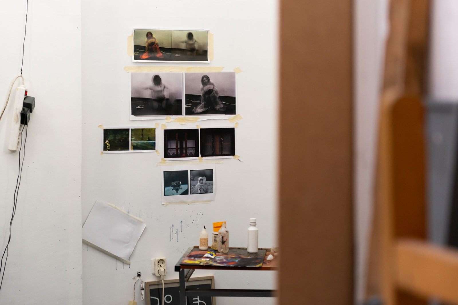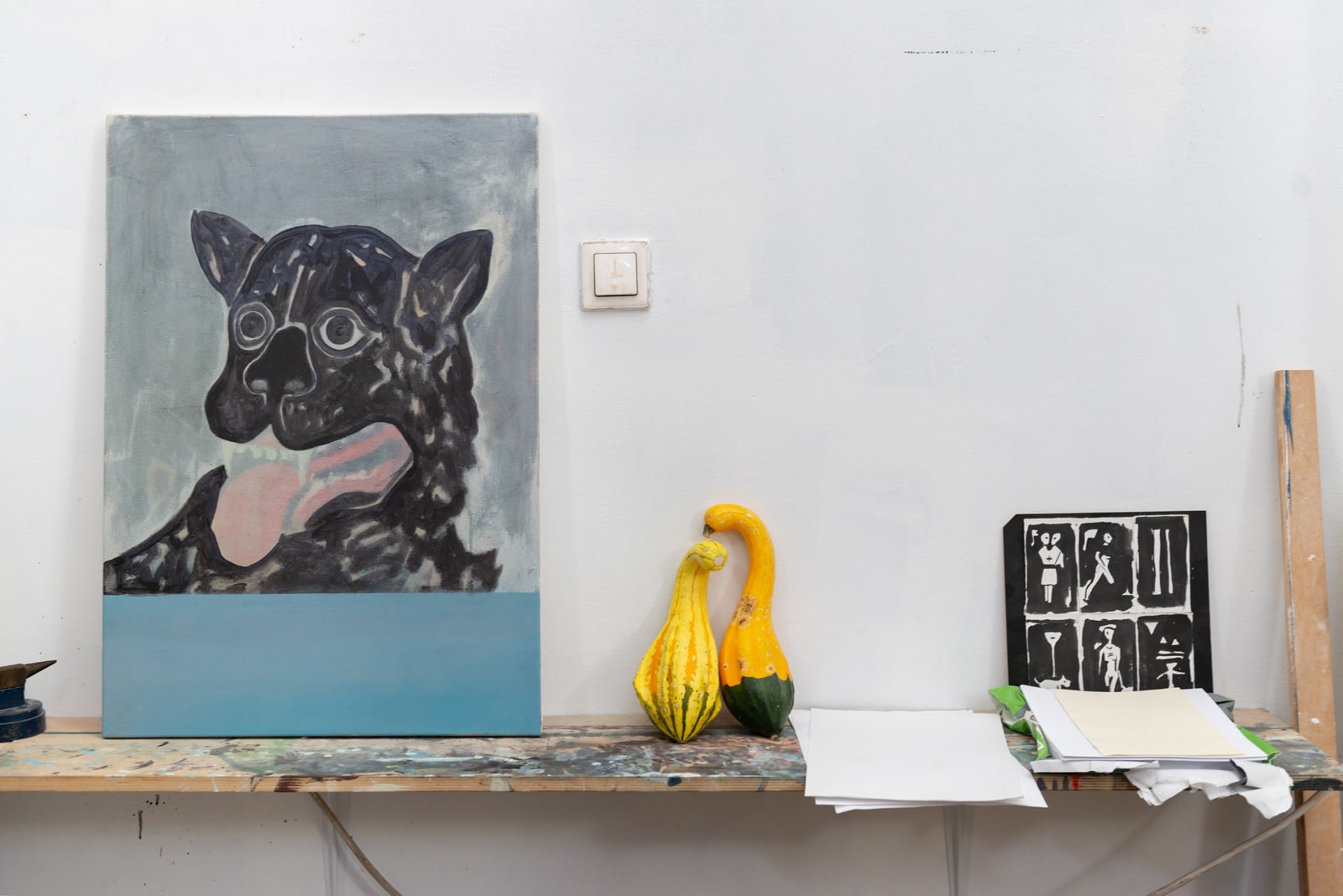 So yes, I studied jewellery design and silversmithing, my studies there were fantastic, especially the crafting part. But jewellery-making has its own limitations, and soon I felt a bit restricted artistically. Switching to sculpture or fashion was a possible next step. At some point I painted some backdrops for a jewellery exhibition—pieces of fabric to be placed behind the jewels. And that triggered me, quite unexpectedly. Then I met a girl studying at the Fine Arts school, we fell in love, and I entered this world for good. Painting, the construction of an image in general, seemed to me as if opening a window, a gate. And I thought: here I can do whatever I want.
