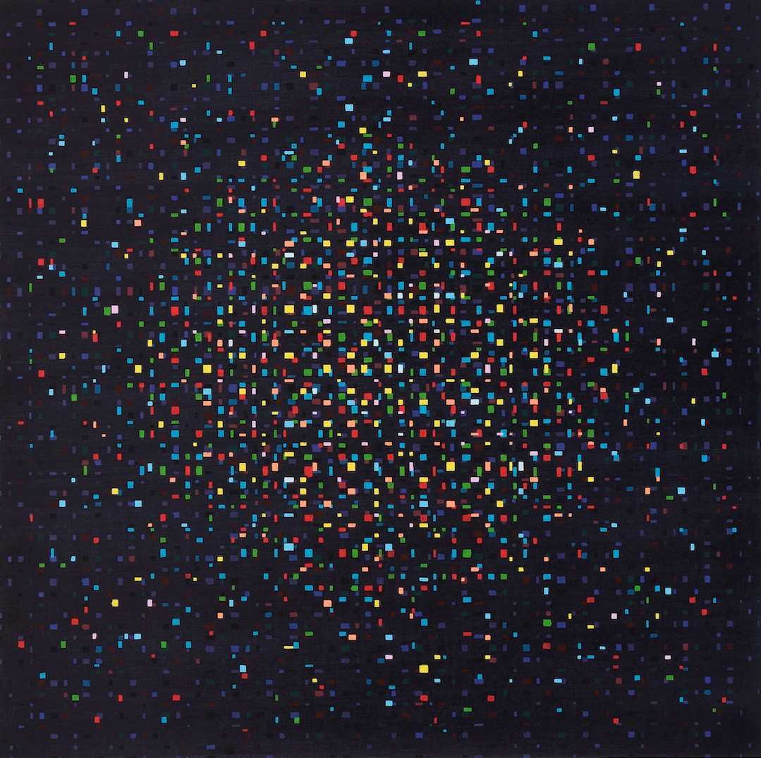 The title came up while I was trying to think of a concept/word that could characterise the main axis of my research, but also the main features of my works. So I decided upon using the word disintegration-fragmentation because it represents the two main aspects of my work, the process of repetition and the dispersal of the painting surface into smaller units.