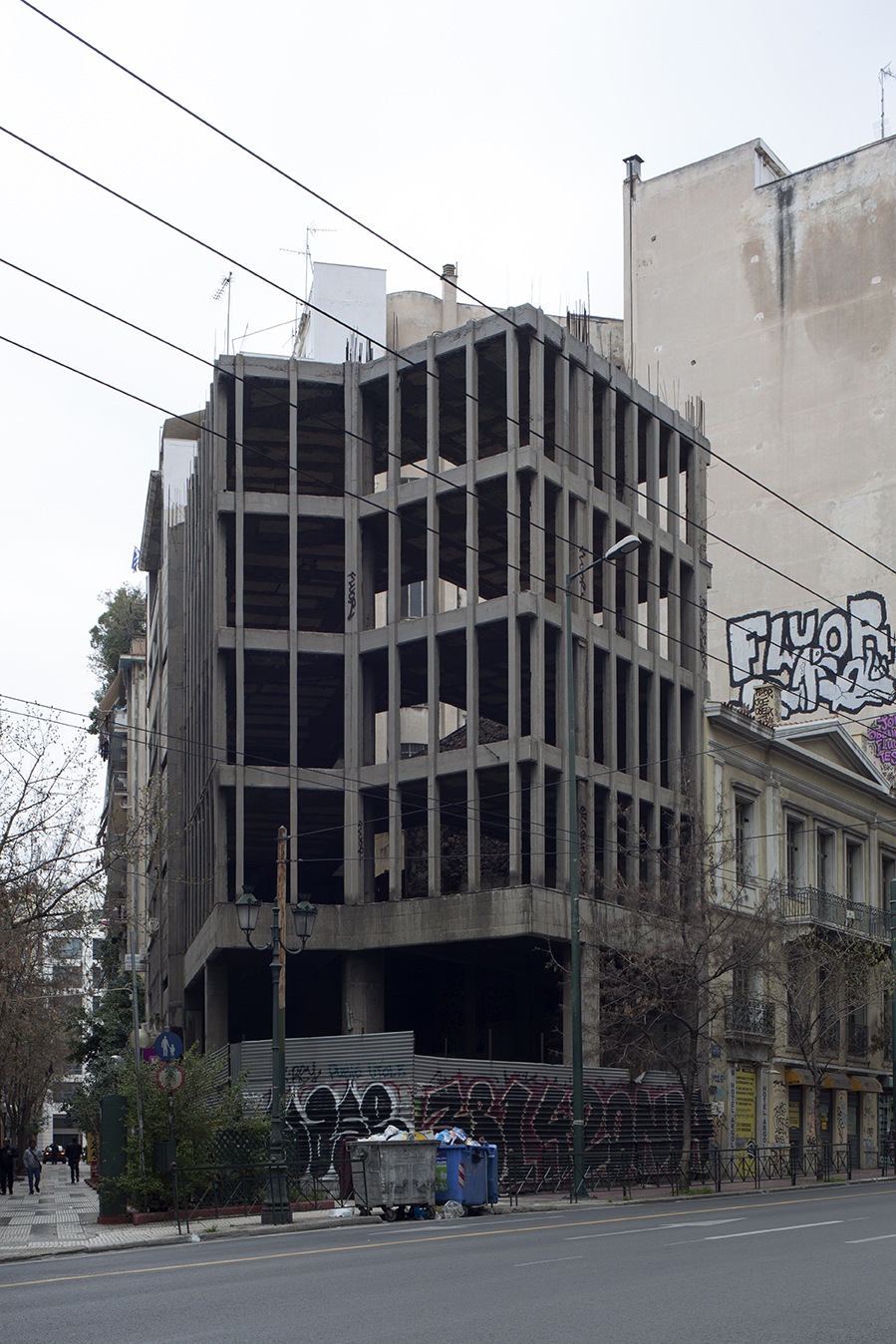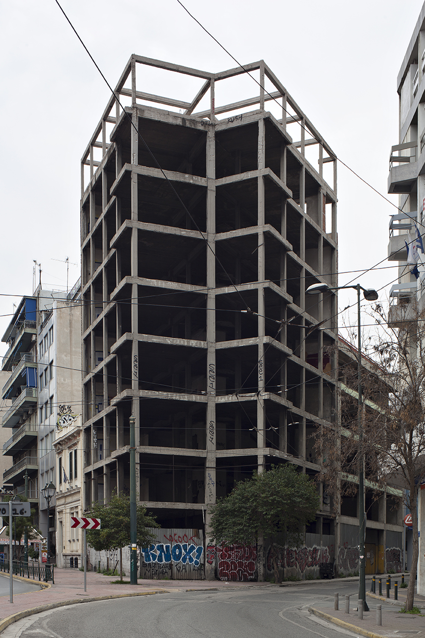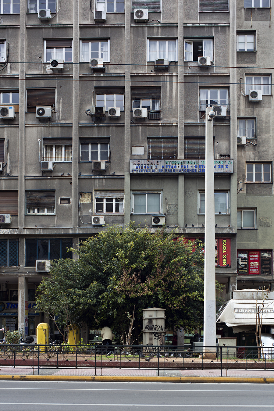 Photographed in his flat, no-tilt style, Athenian buildings acquire a kind of monumentality, and although he’s been in town for only a few weeks, Julius has photographed some of the most iconic abandoned buildings in the city centre. However, decay and abandonment are not the subject of these images, as the artist was very kind to point out in the short interview below.