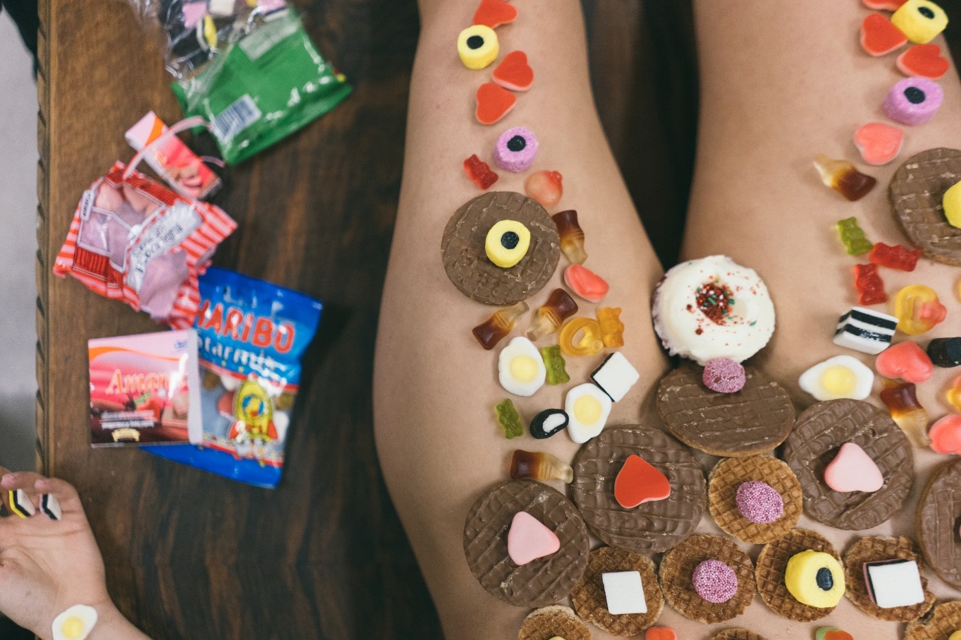 For the performance, I lay naked on a table with sweets and candies decorating my body, while one red velvet cupcake is placed in my mouth and one on the pubic area between my legs. When the participants enter the room, an assistant instructs them that they may eat the sweets but they are not allowed to use their hands, and that the performance will not end until all the sweets are eaten.
