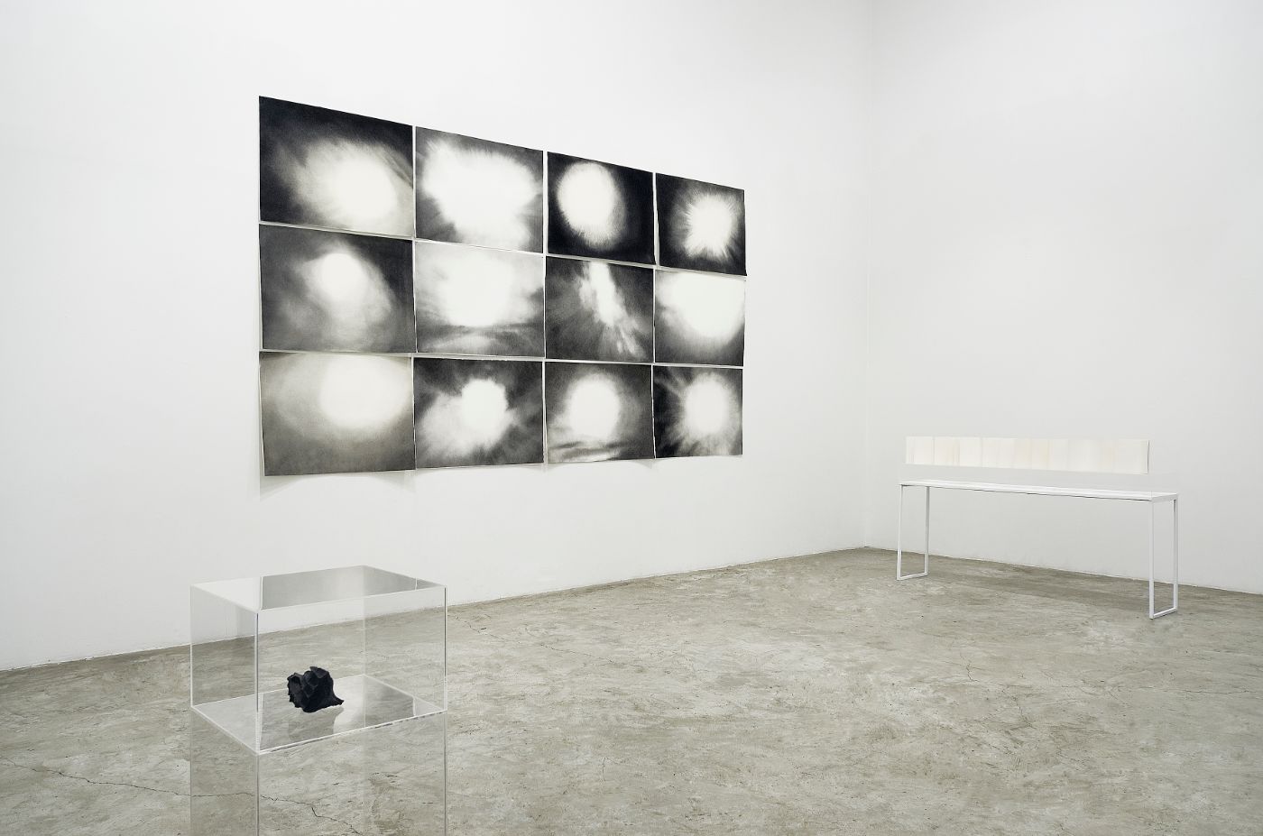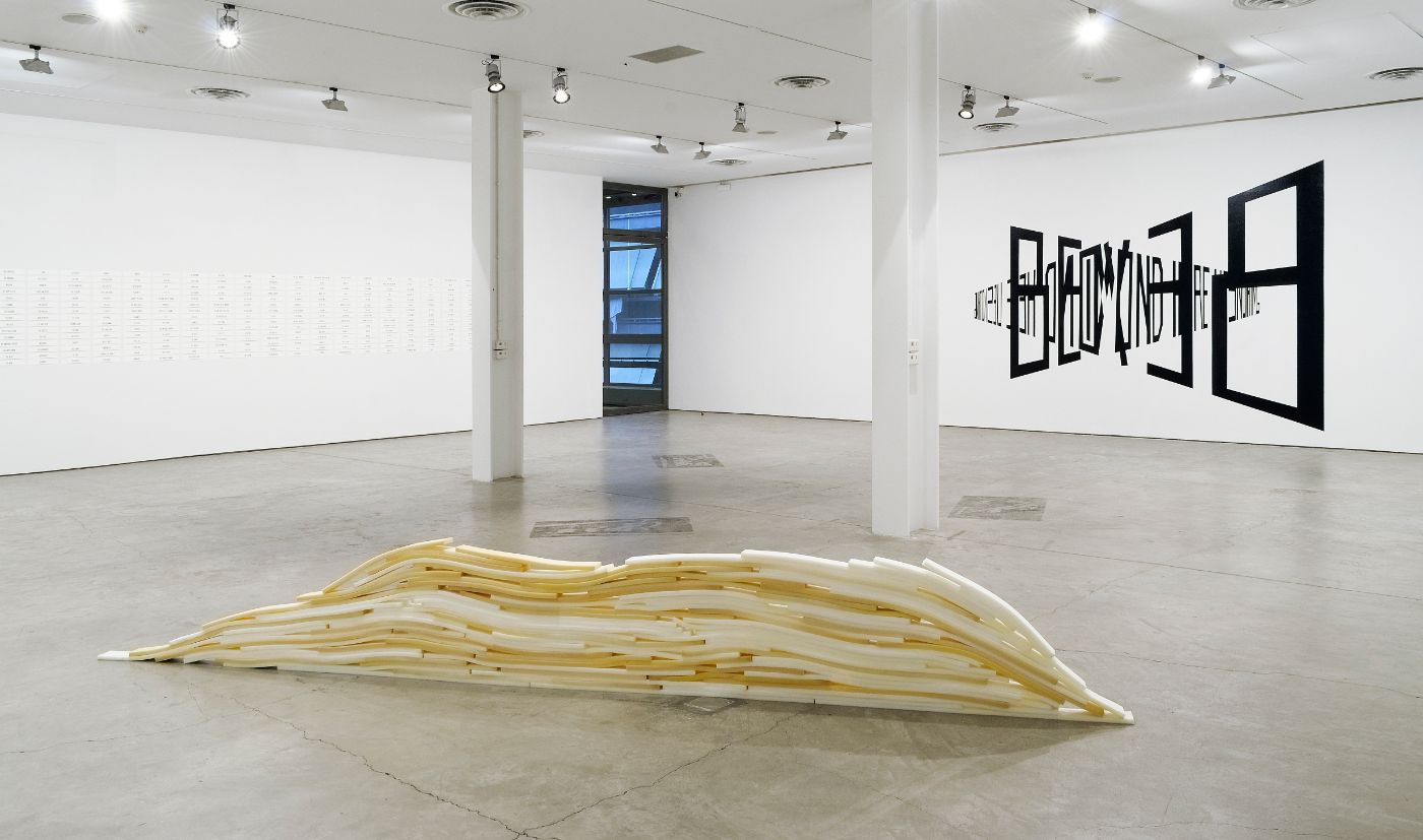 Bassanos looks at home as a common shared space, but explores the hidden, invisible reality of the worlds we inhabit. The Dark Matter series, a set of 12 drawings of swirling abstract forms, emphasise this gap in our understanding of the world – between light and dark and the physical and the imperceptible – to question what we really know about the world around us. A large text piece Beyond Here Lies Nothing obliquely calls out the limits of our collective worldview.