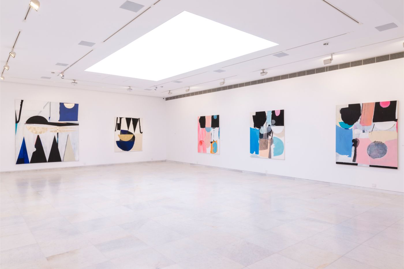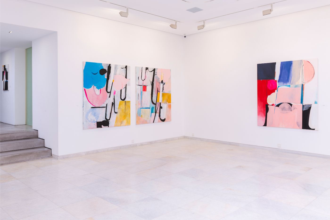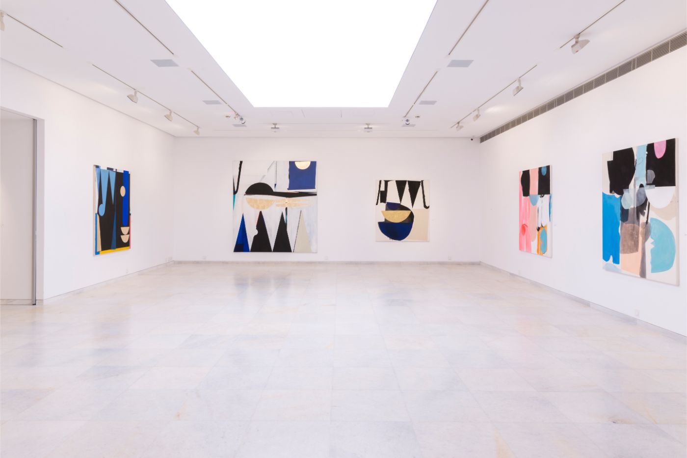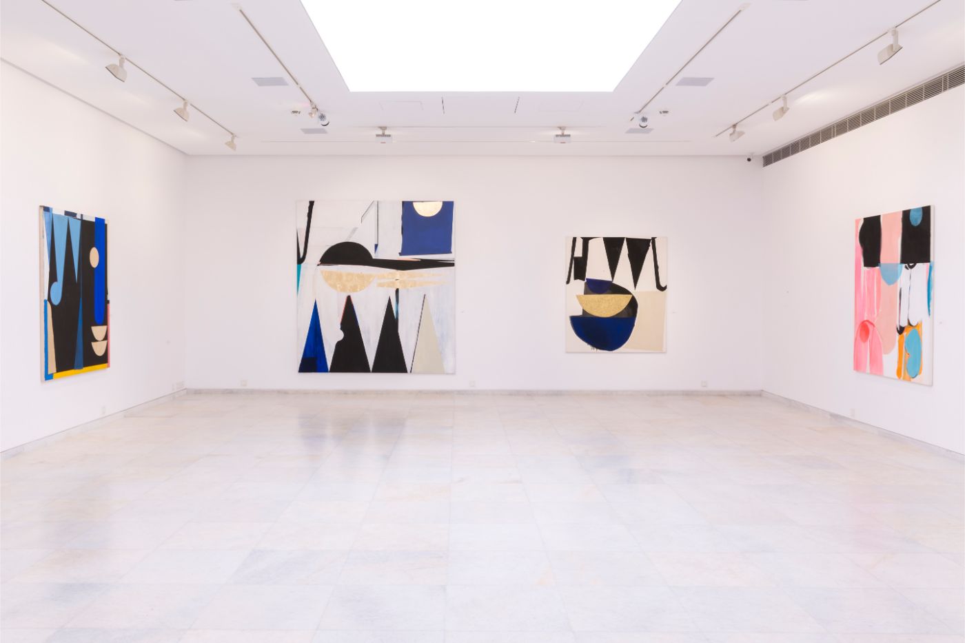 Just like the motifs of a symphony, the canvases at Philippos Theodorides’s solo exhibition Playground Bay indulge in their own repetition, with similar shapes and elements repeating across different works like a melody that keeps returning on different keys. There’s a definitely uncanny feeling of seeing something recognisable and different at the same time, with repetition being an intentional device for exploring the same idea in different ways, or capturing the same feeling at different moments. What we have here however is not mere repetition, but rhythmicality. The counterpoint of similar elements across different canvases creates a rhythm that carries the eye along. It is rhythm, and not repetition, that releases the body into dance. It is rhythm, and not repetition, that keeps a couple together day after day. Following the works along the gallery walls gives a sense of a story coming full circle, a closure that was perhaps anticipated but still very timely.