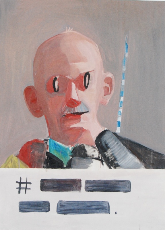 Respectively, the found object employed in Giorgos Maraziotis’ Not Me is a really slim stick is leaning on the wall. Its concaveness signals fragility and delicacy while it echoes the gesture of its deposition. As its peak lies right next to a small painting of a cropped image of a palm tree top, the two of them appear as if they complement each other to form a whole. A different whole is offered by Dionisis Christofilogiannis’ Overlap, a sculpture formed by metal patterns, replicas from Athenian fences, doors and windows, as placed one over the other. Although fences divide and separate the public from the private and one’s property, in this case it brings together the traces of the lives of residents and homeowners who lived in a house one after the other. Having shared the same house, neighborhood, town, country, planet, are we as strangers as we think? Christofilogiannis’ totem-like structure evokes the basic common need for shelter and the jeopardization of human rights. Similarly, the works of Bahlitzanaki, Lane, Nelson and Poka-Yio could not be more topical to current events. Poka-Yio’s cartoon-like portrait of former Greek Prime Minister George Andreas Papandreou, aka GAP, as a post on instagram contradicts the declined popularity of the politician in the media with the increased popularity of the time consuming social media application.