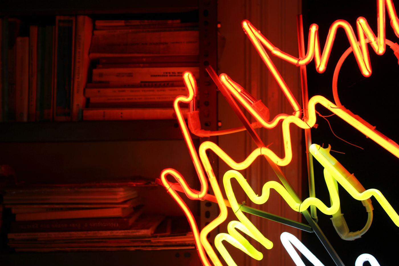 Another photographic image, this time printed on silk by SERAPIS (Washing Hands, 2018), we see a Philippino maritime worker performing a ritual of purification using a dead fish, salt water and motor oil. Again, the macabre meets the joyful, since every ritual of celebration is both an affirmation and an evasion of death. In Arisvi Club’s library room, Vasilis Papageorgiou installed a neon light sculpture depicting a blazing flame (Homage to the Dryly Grasses, 2014), referencing the ancient practice of farmers burning their fields to enhance their fertility. And although the exposed technical aspect of the work makes the whole concept more relatable, and reminds us that the very reason for burning a dry field is to help it grow anew, it is impossible not to think of dry grass as a metaphor for human mortality: