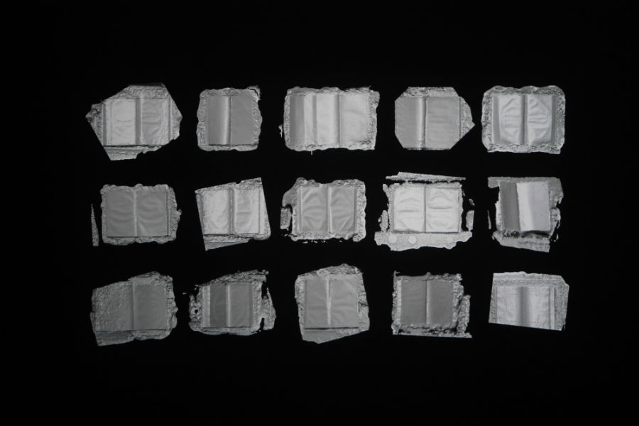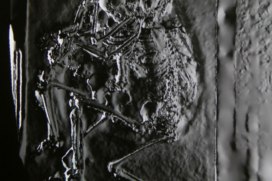 Translating the Sun also focuses on a technological component, namely a solar panel array. Rendered as calcifying plaque what the visitor encounter could very well be an excavated find that depicts some kind of undeciphered writing system belonging to some ancient civilization. Its ambiguity reminds us that our contemporary dependence on solar energy is not unrelated to the solar worship that was commonly practices in early human communities.