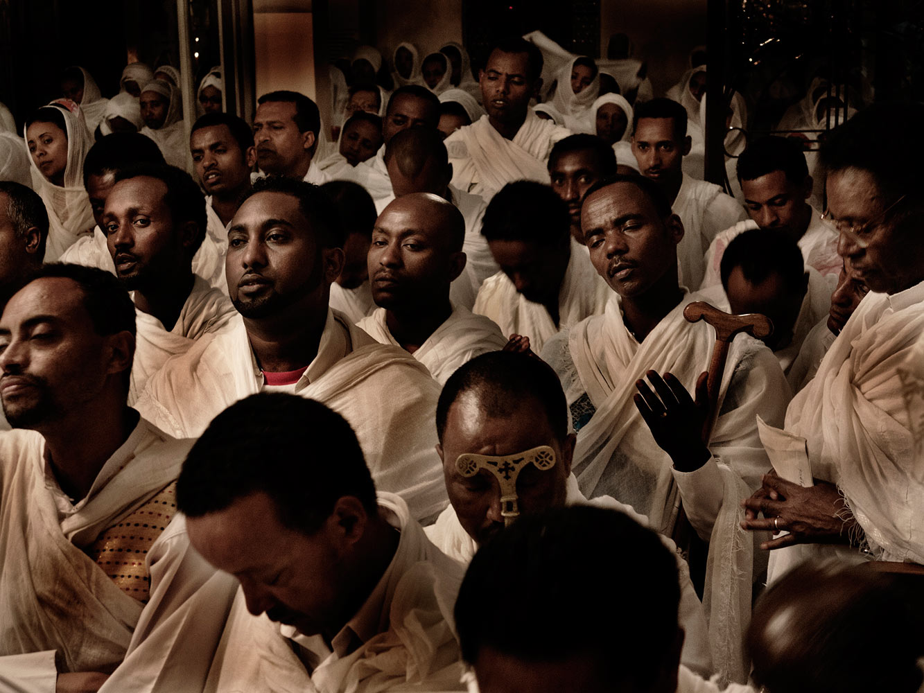 This project began about four years ago, or maybe more. This whole story started because of my curiosity to see the Holy Saturday mass at an Ethiopian church. I had read in a newspaper that there’s a very nice Easter mass at the Ethiopian church of Athens, and I took the risk of missing Easter with my family to go to a church where there was the possibility that they would not let me take photos. Despite all that, and after a little adventure and some fortunate coincidences—one of which being that the address on the church’s website was wrong, so I had to ask a policeman whether he knew where the Ethiopian church of Athens was, who then actually called HQ and found the address for me—I managed to do this project. If I hadn’t been curious enough to go to that mass that night, this project would have never happened.