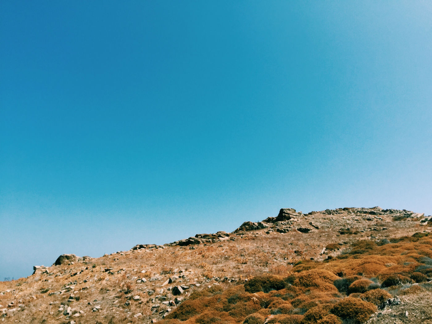 Imagine you’re flying in a hot-air balloon over the Cyclades and you’re drifting southwards over the sea. Behind you, Tinos rises like a mountain sculpted by a divine maker, and to your left is Mykonos: a smoother body with rounded hills, small peninsulas and exposed rock formations. The Greek summer wind known as meltémi blows from the north, pushing us over the sea in silence. Far away towards the horizon, a ferry is drawing a line of white foam, heading to Paros perhaps or Naxos. And in the middle-distance, a cluster of islands that seem mysteriously uninhabited. The one to the east, significantly smaller, has a pointy hill standing in its middle, like an obelisk raised to honour a time-forsaken pact. No tree or bush grows here, and the whole island is covered with dry, golden grass and what seem to be like the foundations of a large city: this is the once prosperous sanctuary of the Ionians and home to their patron god of light. This is the sacred land of Delos.