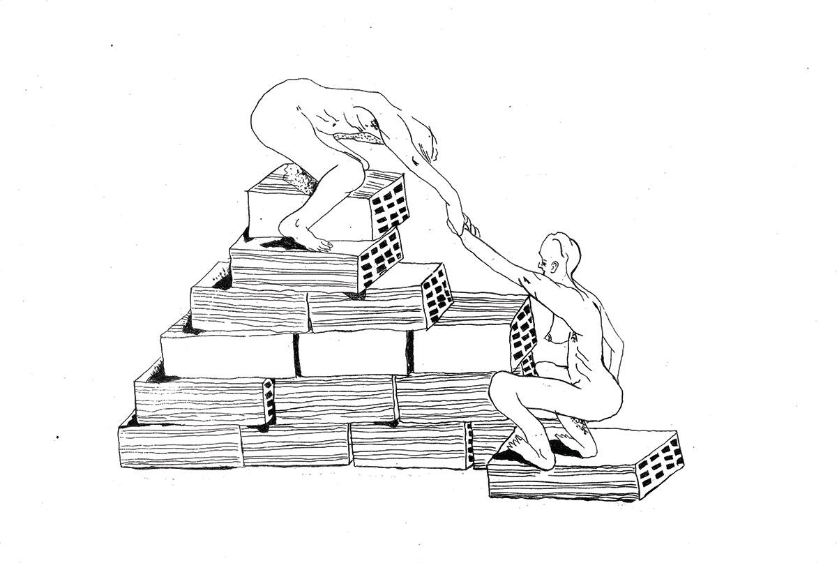 White plastic chairs — armchairs almost — usually bought from Rom sellers driving around in their open trucks, are a frequent sight in summer balconies and gardens in Greece. Seize the Night (2014), Samson Rakas's final version of his Psyttaleia project, is in 24 continuous sections of varying length, bearing as their titles each of the Greek alphabet's 24 letters. It was self-published, each copy being unique, as it consists of the poem in photocopied pages cut and pasted on pages of a second-hand book, the whole being stapled together and including colour photocopies of four beautiful illustrations by @apiastosleizer [“unstoppable laser” in Greek], portraying in tondo four characters appearing in this long poem. A fifth, the gypsy kid of section “k” presented here, adorns the cover — or perhaps I should say (since I have not seen the other copies), my cover: that of “monotype no. 509”.