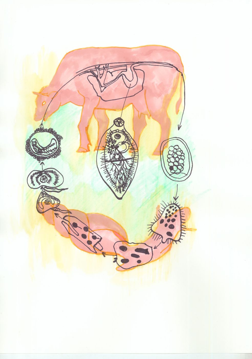 A ribbon round your head and, on your tummy, arrows,