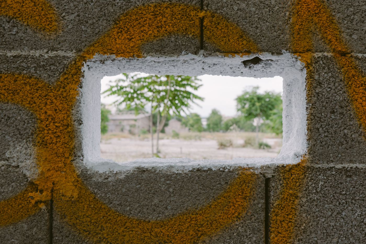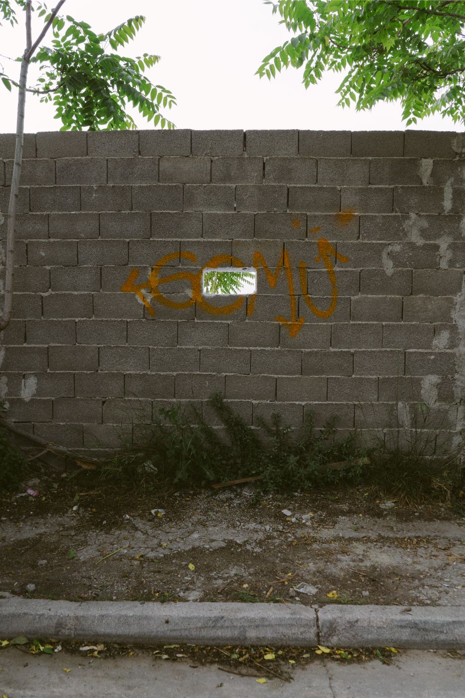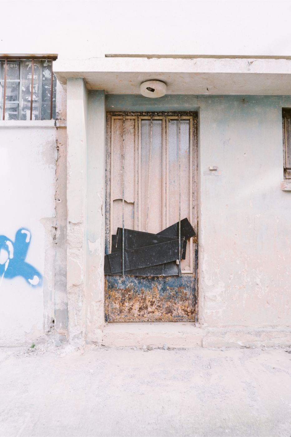 When I decided to do an exhibition in public space, my first question was how to establish a relationship with distance. A street’s main function is to help us cover distances faster, so I wanted to experiment with the idea of installing an exhibition that covers all 700 meters of Lefkados Street without increasing its density. In other words, somehow think of an exhibition that could fit into a typical white-box gallery, but explode its contents across the whole length of the street. As a result, the works had a distance of between 10-100 meters from one another. (If you didn’t see some of them, the distance grew.) In a gallery, the transition from one work to the other takes a few steps, and only as long as your eyes need to travel from one part of the wall to another. In White Island Good View, this transition is a literal walk. Most works have been installed in such a way that you can’t see the rest. It is therefore an expedition into losing sight, of singular encounters that persist. Of ingesting what has been seen, of seeing being a matter of remembering. Moving from one work to the next is like holding your breath. I discovered that holding your breath is not the same as not breathing.