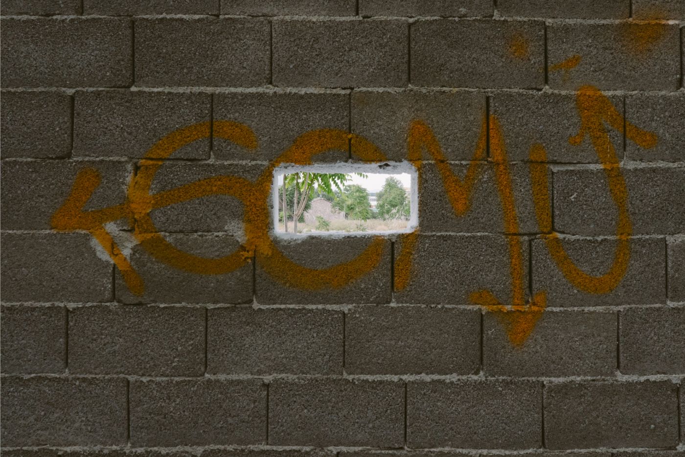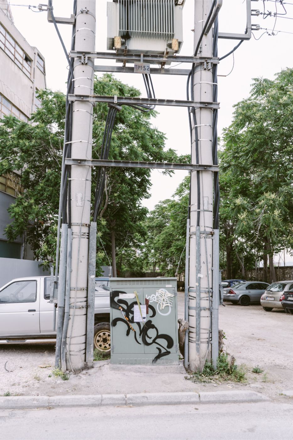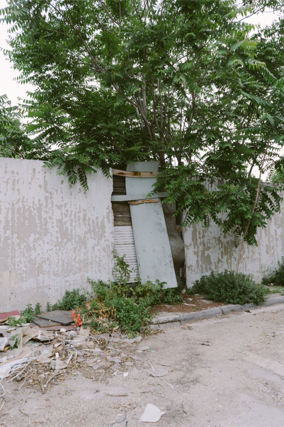 When I decided to do an exhibition in public space, my first question was how to establish a relationship with distance. A street’s main function is to help us cover distances faster, so I wanted to experiment with the idea of installing an exhibition that covers all 700 meters of Lefkados Street without increasing its density. In other words, somehow think of an exhibition that could fit into a typical white-box gallery, but explode its contents across the whole length of the street. As a result, the works had a distance of between 10-100 meters from one another. (If you didn’t see some of them, the distance grew.) In a gallery, the transition from one work to the other takes a few steps, and only as long as your eyes need to travel from one part of the wall to another. In White Island Good View, this transition is a literal walk. Most works have been installed in such a way that you can’t see the rest. It is therefore an expedition into losing sight, of singular encounters that persist. Of ingesting what has been seen, of seeing being a matter of remembering. Moving from one work to the next is like holding your breath. I discovered that holding your breath is not the same as not breathing.