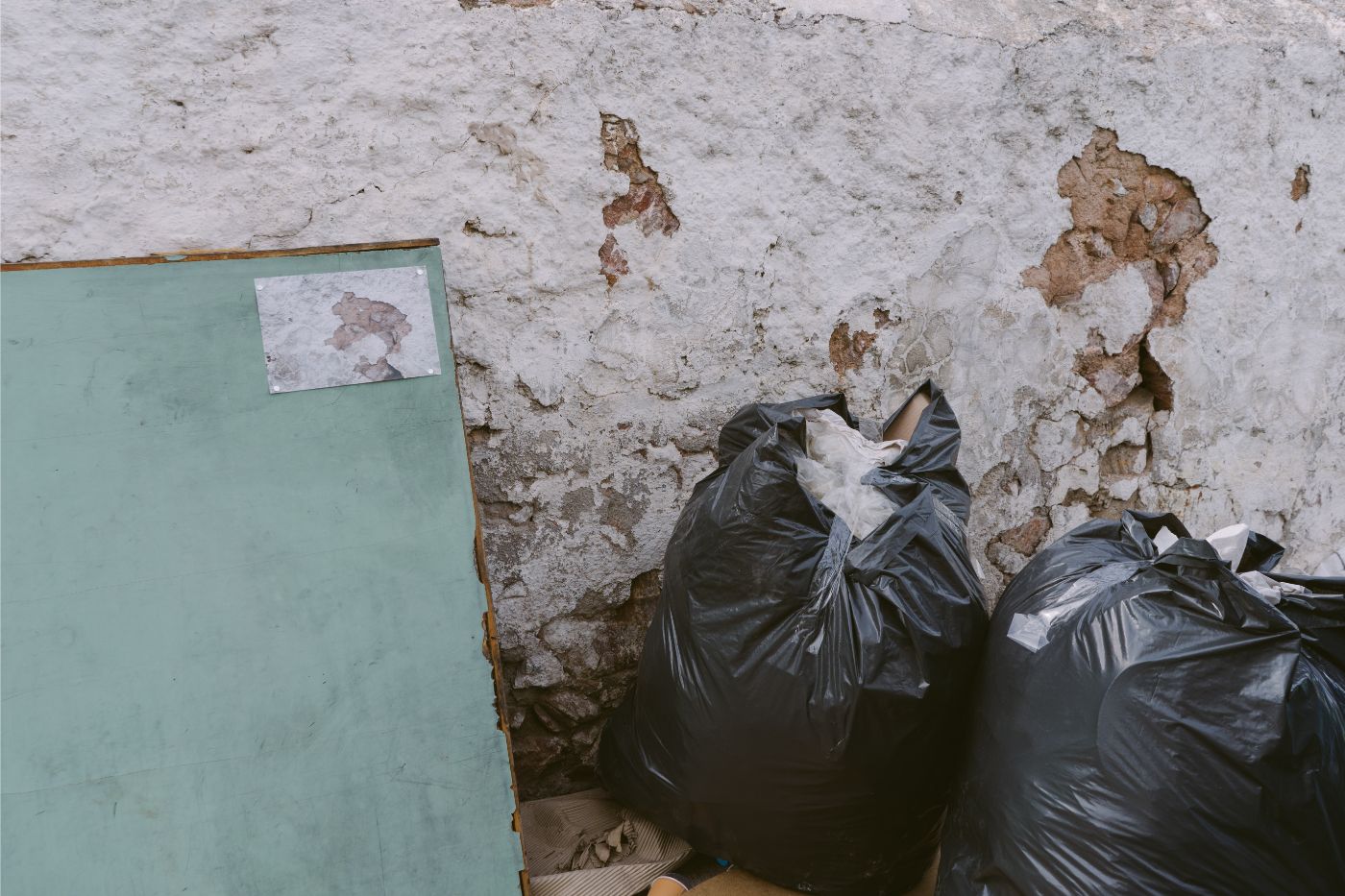 Every work that is part of White Island Good View is a temporary object in transit. It can be removed, altered or copied freely, by anyone, for any purpose. The objects and writings we have deposited on Lefkados Street are like letters left on the street to reach an unknown recipient. (Do you read me? Will you read me?) It was also interesting to experiment with the idea of the ruin as a letter from the past that is being read in the present. A ruin (and there are many ruins on Lefkados Street) is a contemporary site bearing past information. Suddenly, a wormhole opens and we try to make what we can of its fleeting images. Our relationship to the space becomes linear, running along this line of exchange between sender and recipient, past and present, like a dog leashed on a clothesline. We see things that have remained and we decipher them. We pick up notebooks and letters from strangers that were discarded, not meant to be read. Pages, scripture, private fragments: they come and go, bearing messages.