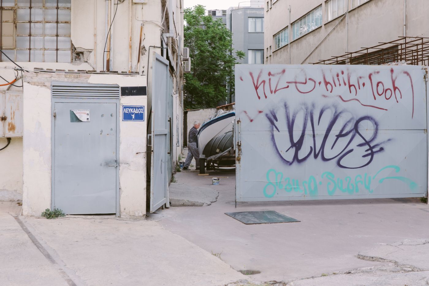 The photos in this article are presented in the actual order of the works on the street, starting from Lefkados 28 and going west.