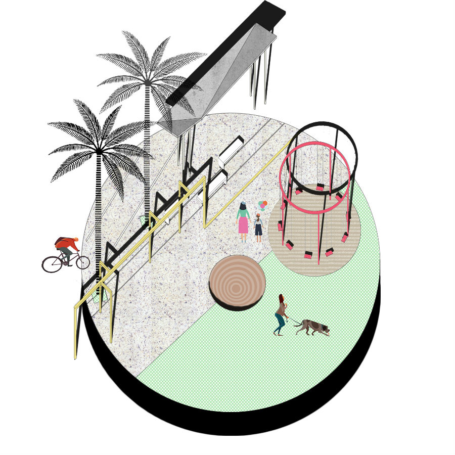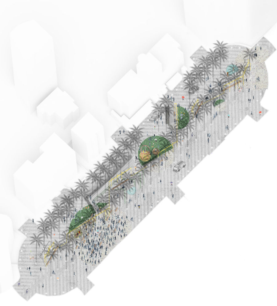 The study deals with the redesign of Haritou / Ekato Hourmadies Square (1933) on the northern edge of the town of Rhodes—a monumental work that is a typical example of colonial urban planning with elements of exoticism. The design has to do with the environmental upgrade and the redefining of public space in the town’s touristic core, where oversized buildings have surrounded [the square] and have imposed a circular movement in it as if on a roundabout. The study fortifies the linearity of the square and reopens its vantage points towards the sea; meanwhile, the space’s unified design treatment with a reordering of surrounding streets and clean geometric shapes fortifies the square’s re-incorporation in the urban space. The square will become a year-round destination with a super-local character for residents, and the starting point for a longer route for visitors.